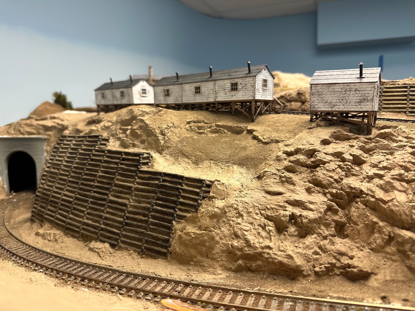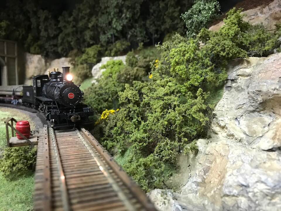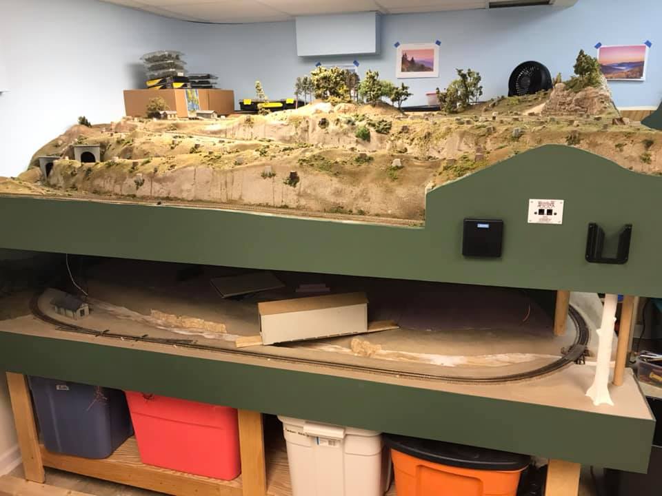 As a multi-level design, the lower and middle levels are joined using a double deck peninsula (with reversing loops on each level) at one end with walk around shelves to a helix at the other end. Continuous running of trains is possible between the lower and middle levels. On the upper section of the peninsula, a series of switchbacks connect the middle level of the peninsula to an around-the-wall shelf on the upper level. Three towns will be modeled in detail. On the lower level, the main industry in the town of Walland will include the Schlosser Tannery and the sawmill complex will dominate Townsend. Specifically, the Townsend Sawmill Complex will feature a fully detailed sawmill, power plant, planing shed, transfer shed with a tramway leading to the drying yard, sawdust burner, coaling station, water tower, and machine shop. Logging operations and the town of Elkmont will be modeled on the upper level. Finally, there will be seven bridges traversing the Little River that run throughout the landscape on all three levels.
