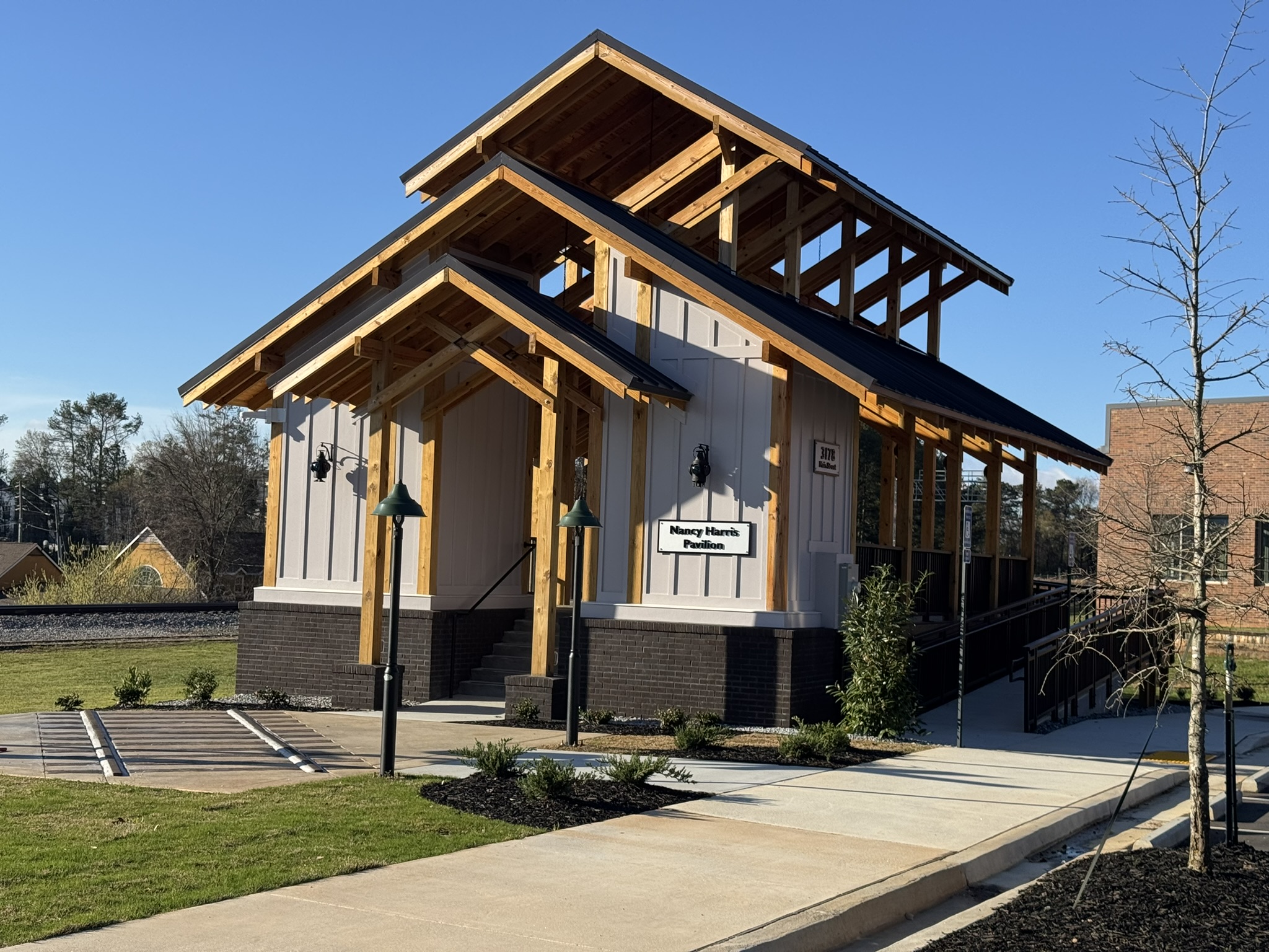 Designed by local architects Rob and Carmen Ponder, the pavilion is situated steps from the City’s historic 1908 Calaboose and the Duluth Gwinnett County Public Library.
