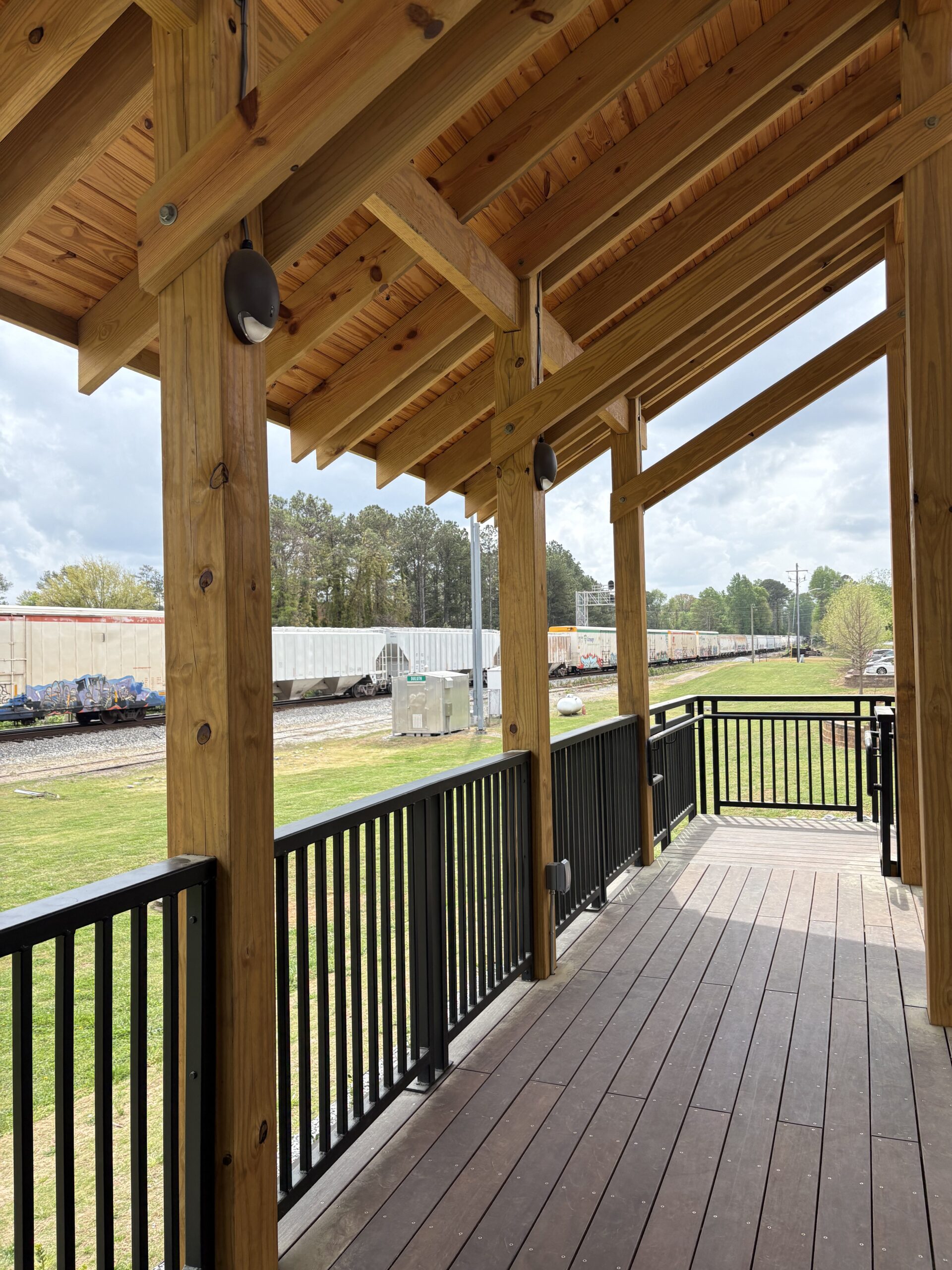 Located in City of Duluth, just 25 miles northeast of Atlanta, the Nancy Harris Pavilion and Train Viewing Platform offers an exceptional “front-row seat” to the high-traffic Norfolk Southern mainline. This purpose-built, elevated observation deck honors Duluth’s roots as a rail stop dating back to 1876.